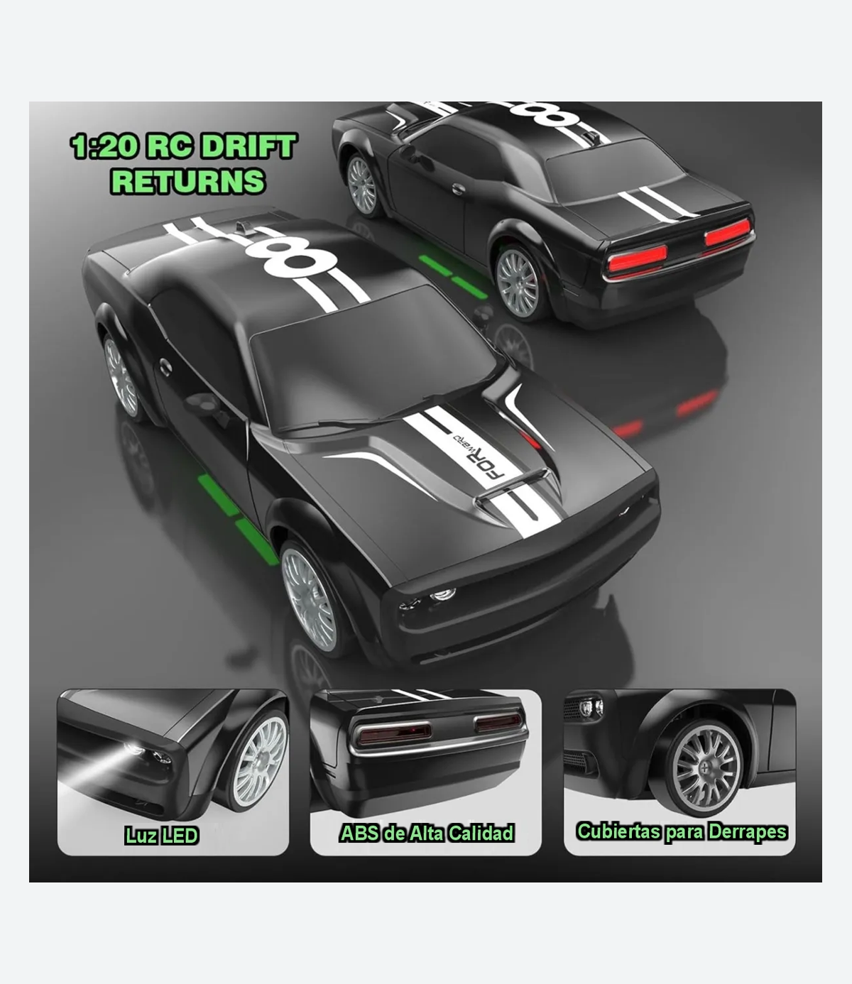 El Coche RC Drift es más que un simple juguete; es una herramienta para fomentar la creatividad y la competencia sana entre amigos y familiares. Su tamaño compacto lo hace fácil de manejar tanto en interiores como en exteriores, brindando versatilidad en el juego. Con su atractivo diseño y características innovadoras, este coche es una excelente opción para cualquier joven entusiasta de los vehículos a control remoto.