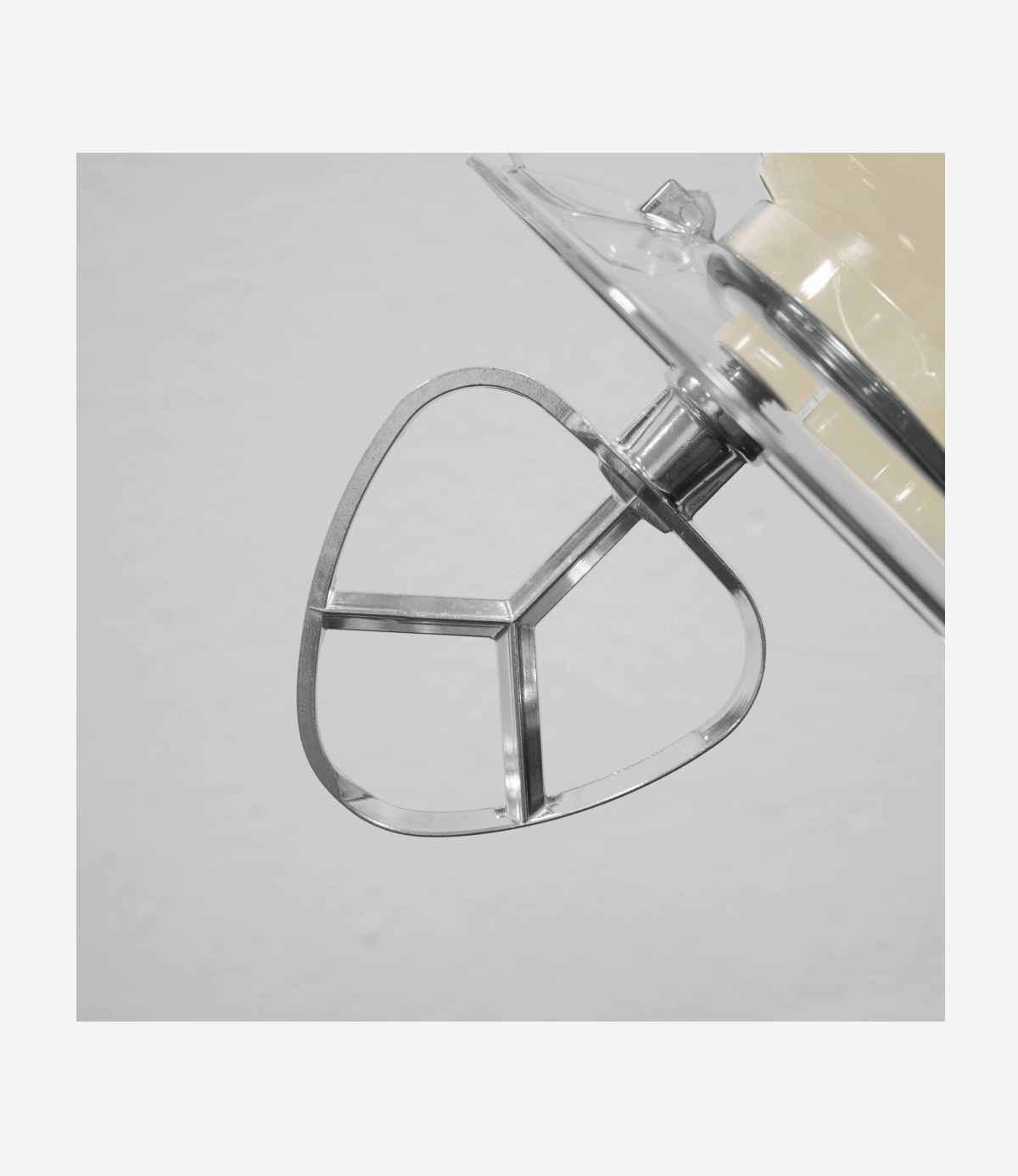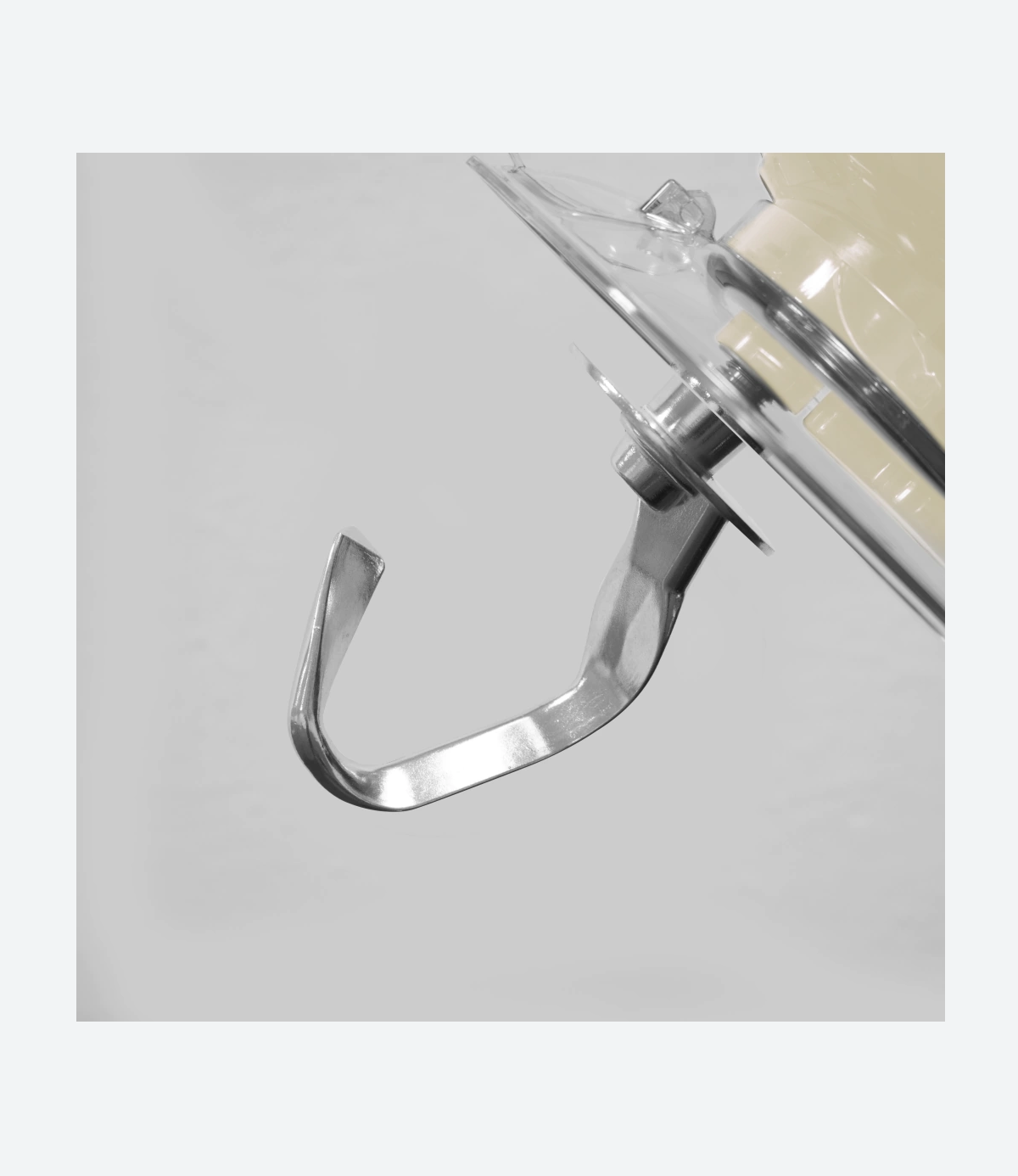 Versatilidad y Seguridad Equipada con 8 velocidades y tres accesorios intercambiables: gancho de amasado, batidor grueso y batidor de alambre. El sistema de montaje tipo bayoneta facilita el cambio de accesorios. Su cabezal rebatible y traba de seguridad garantizan comodidad y protección.