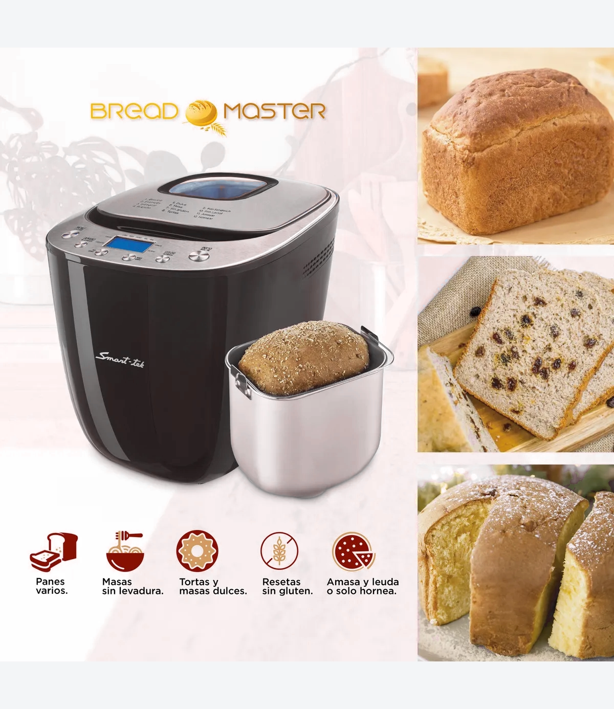 Nada mejor que disfrutar del irresistible aroma a pan recién hecho por las mañanas y en tu casa. Con el horno de pan Smart-Tek podrás tener los mejores desayunos caseros todos los días.