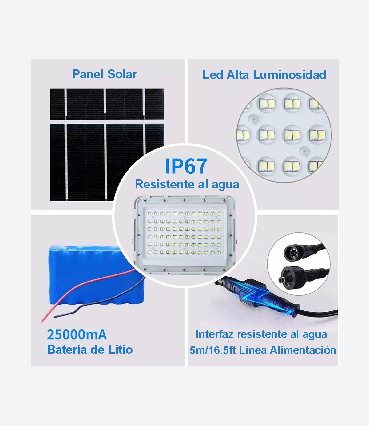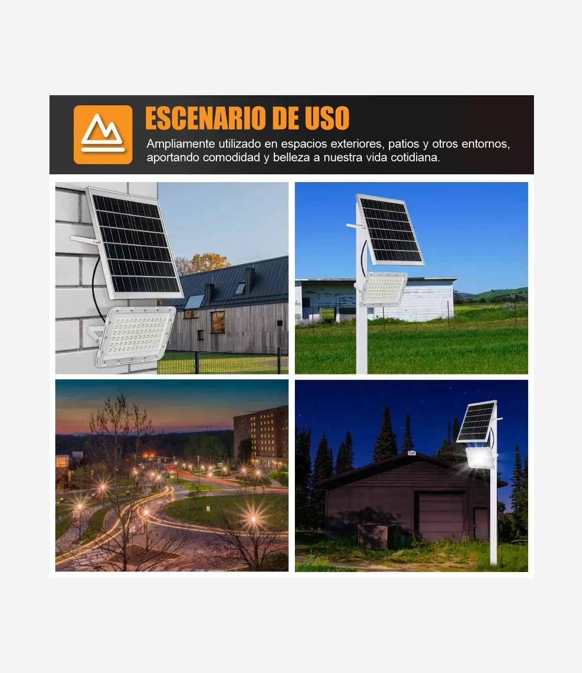 Iluminá tus espacios exteriores con potencia y ahorro. Ideal para jardines, estacionamientos, salones de fiesta, fábricas y carteles. Su energía solar te permite reducir costos de electricidad y cuidar el ambiente.